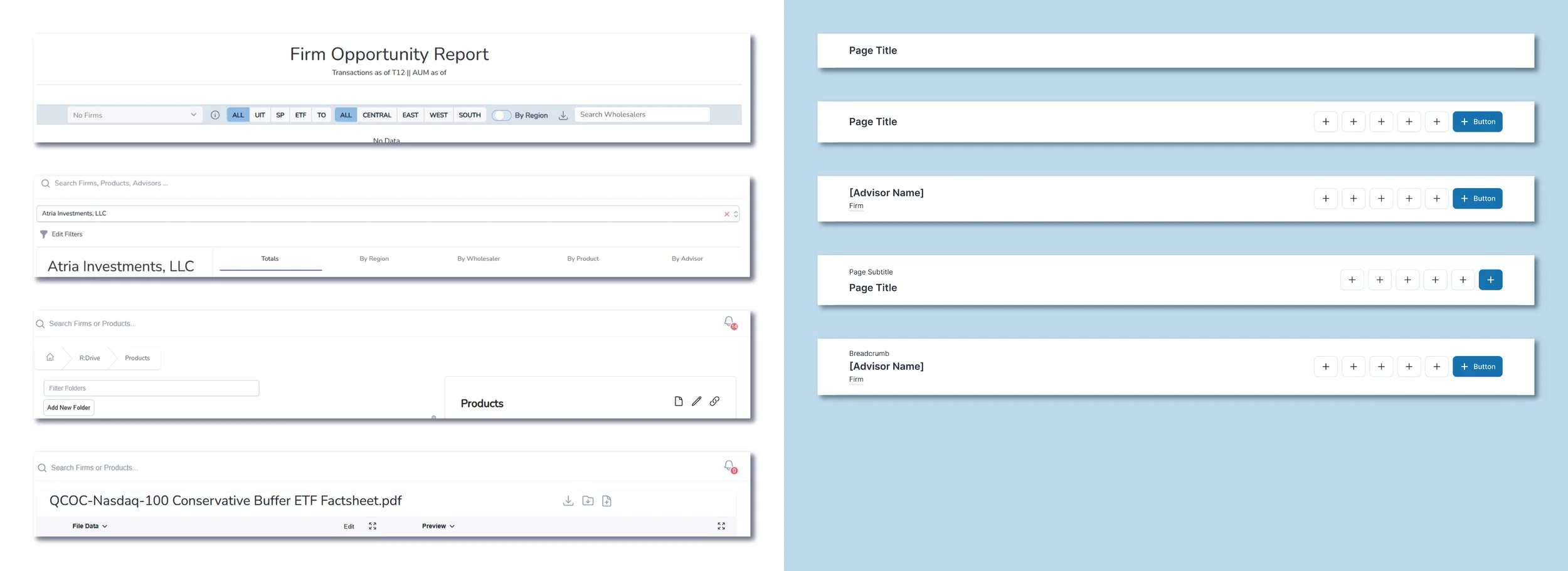 I introduced a standardized title bar system that defined hierarchy, action grouping, and contextual metadata consistently across all reports. This created visual predictability, reinforced platform cohesion, and reduced cognitive load for sales users navigating between tools.
